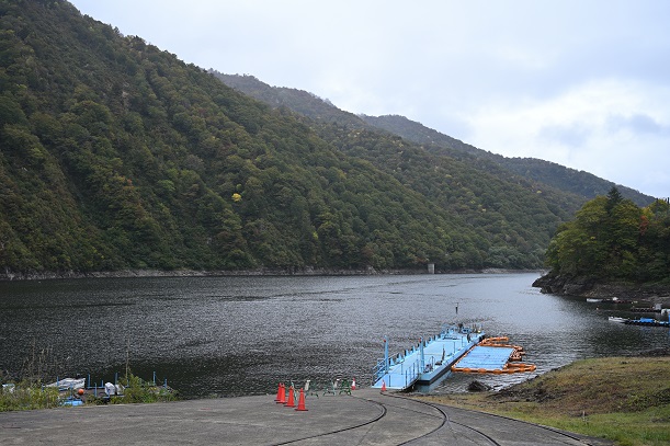 銀山平の遊覧船乗り場です。この時天候が悪く、荒沢岳方面の稜線は見えませんでした。