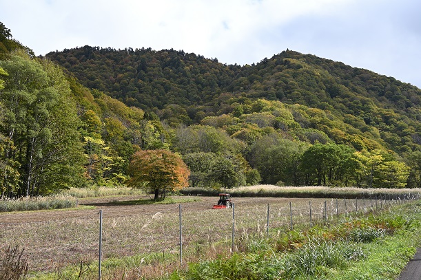 途中 美しい白樺のある耕作地があり、耕運機が動いていました。のんびりした雰囲気ですね。ソバを育てていたのでしょうか?