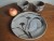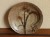 外径30cmの大皿です。 桜灰釉の焼き上がり(溶け具合)が、最も良かった作品です。絵付けは、飯豊連峰の高山植物を描きました。土は、益子で採れた唐津風原土を使いましたが、砂目の多い土に慣れていないこともあり、厚手の造りです。縁に窯割れがありますが、金継ぎで補修しました。妻はこの重い皿を使いません。