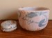 表は私の実家の2階から見た里の絵を描きました。裏はランの花です。土はもぐさの上層土で高台の土味を堪能していただければと思います(写真3)。