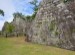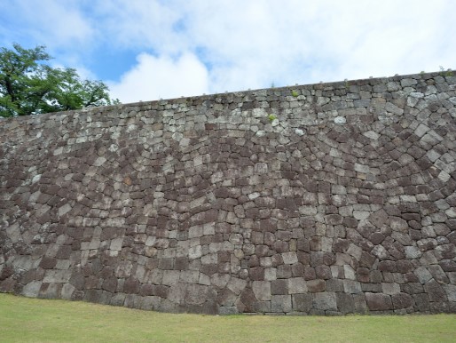 ともかく石垣が立派なこと!清水門からの観る正面の石垣は横方向に広く高さもあってなかなかのものです。本丸の台地に上がる気持ちを抑えて、まずは本丸を形成する石垣の周りを一周することにしました。西面や南面の石垣の下は広い緑のスペースになっていて、ゆっくり休むのにちょうど良いと思いました。中学校の林間学校で生徒が休憩するのに良い場所かもしれませんね。