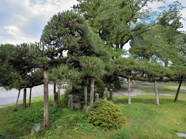 樹齢約200年と言われる現在の松。松は鶴が羽を広げたような形をしている(写真1)。この松を背景に学童疎開の写真が撮られた。