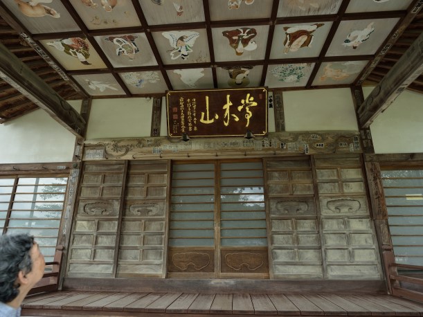 本堂の入り口天井には絵が描かれている。本堂の右側の建屋は改築されていた。そこで御朱印をいただいた。