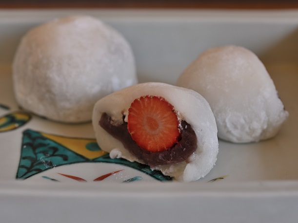 近所の和菓子屋さんで毎年楽しみにしているのが いちご大福です。小豆と生クリームが控えめな甘さで苺の味を引き立てます。