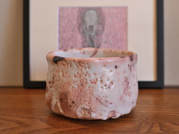 枇杷色の美しい陶兵衛粉引と言われるものです。薄造りのこの茶碗は春の訪れにぴったりです。上述の備前茶碗と比べてこの茶碗はすべてが柔らく造られています。