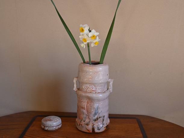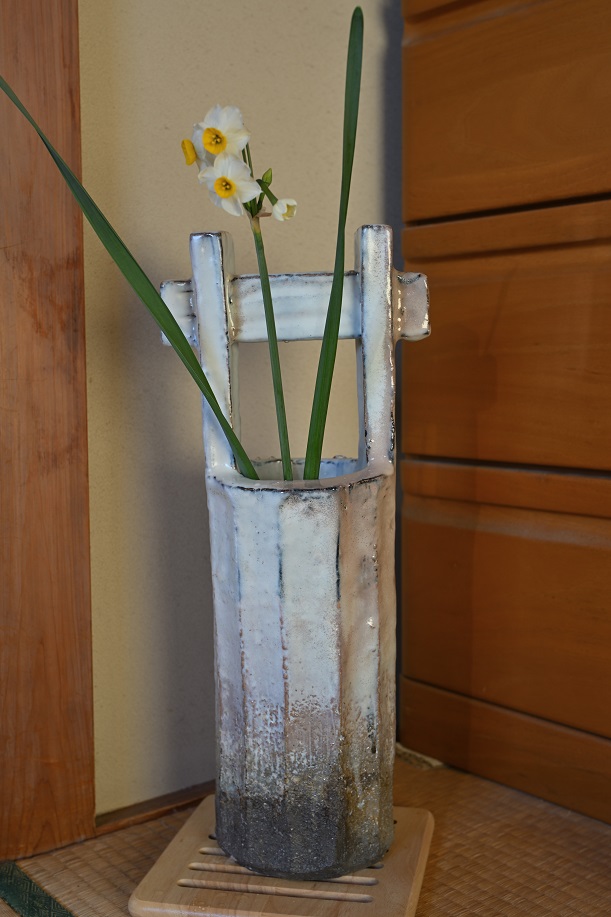 この花入れの高さは45cmもあるので長めに切った水仙を入れるのにぴったりです。