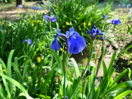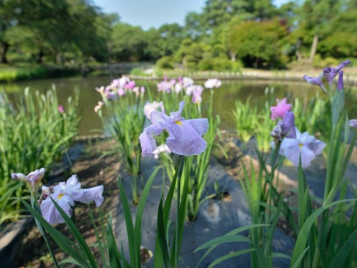どちらかと言うと俗化されている境内をそうそうに引き揚げて、向かいの「あやめ苑」に行きました。6月15日からの「あやめ祭り」は、コロナウイルスの影響で再延期になったようです。私が訪問した6月9日には、全体の3割ぐらいは咲いていて楽しむことができました。地元の人も数人来ていて、同様に写真を撮っていました。150種のあやめが植わっているそうですが、色の違い以外はみな同じ品種に見えてしまいます。