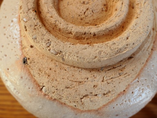 最初に述べましたように もぐさ土を岐阜県瑞浪市の粘土屋さんから購入していますが、何しろ自然のものですので購入するたびに異なります。この茶碗の土はその中でも最も気に入った土です。このように土が良いと志野釉の発色も良くなります。