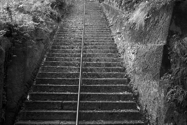 門前町から境内へ登る石段。