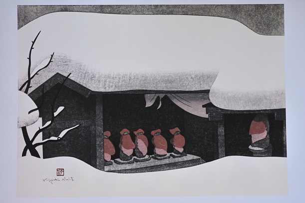 雪の中のお地蔵さん。この絵を観ると会津本郷のお地蔵さんを思い出します(写真2)。 会津ではどこでも見る光景なのでしょうか?