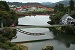 写真3は菊光堂の舞台からの景色です。赤い鉄橋のむこうに斎藤清美術館が見えます。